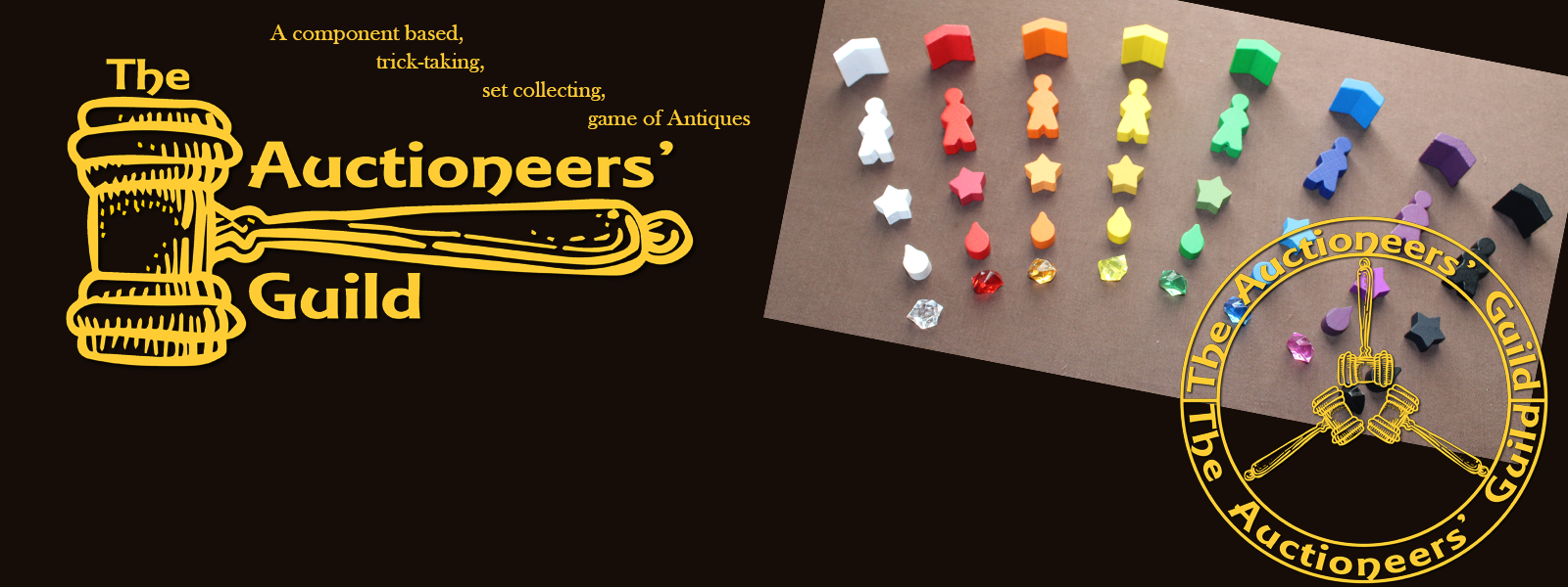 The Auctioneers' Guild is a component based trick-taking game. Rather than using cards with suits and values, the type of the components determines the "suit" and the color, which represents the age of the antique, determines it's value.