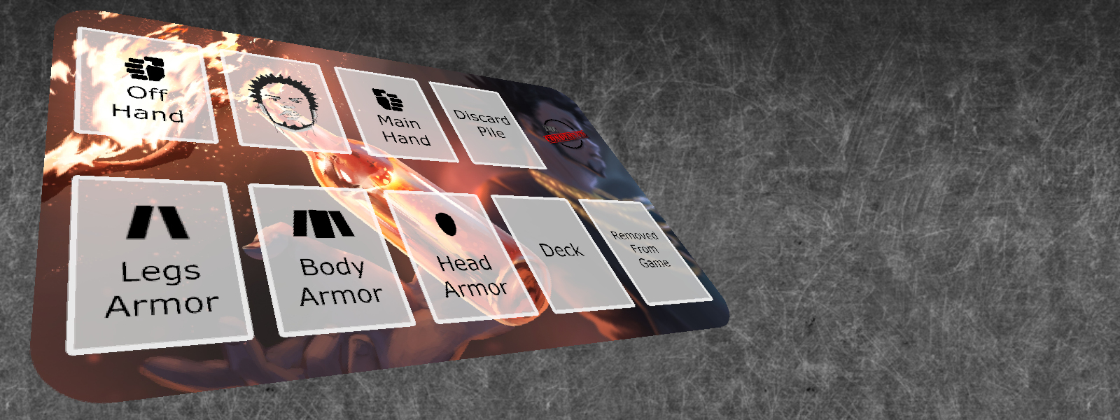 The Condemned Premium Play Mat series features the hottest artwork from The Condemned in play mat form! The GRip play mat features artwork from the Molotov Cocktail in the background. The Condemned card slot features concept art of GRip's face instead of the normal silhouette on the standard play mats.