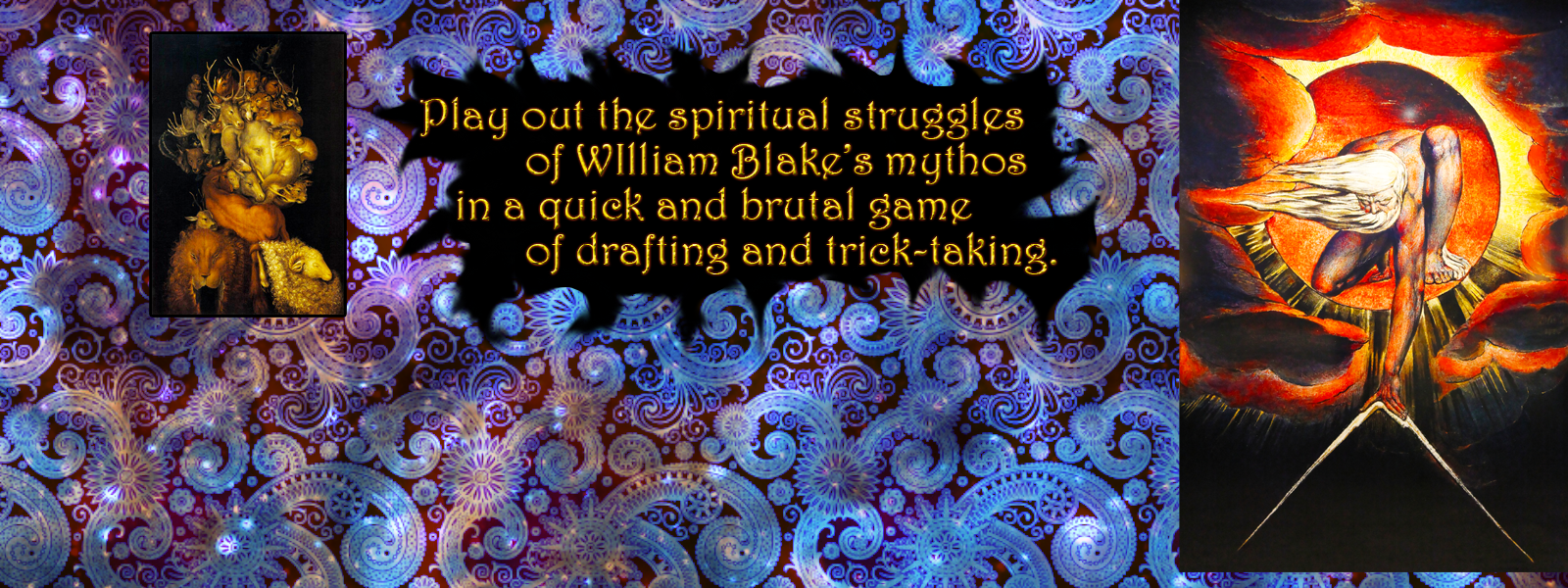 The four suits of the Four Zoas come from William Blake's work of the same name. In this trick-taking game, the focus isn't just on winning the trick in front of you. Over time your deck will change as the captured cards get passed around from player to player. If you manage the ebb and flow of cards, predict your opponent's path, and answer them accordingly, then you will have won the right to call yourself a true student of the Four Zoas.