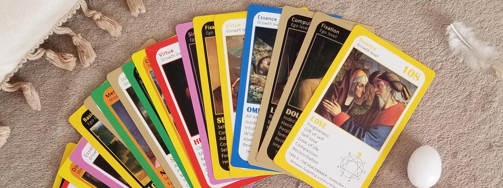 Please visit the store Boutique de l'Oracle de l'ennéagramme for more informations or order the Oracle with booklets and box, or the digital booklet to learn more about the cards.