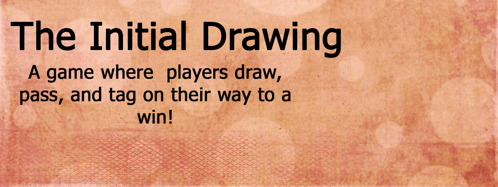 This is a one card game. Players provide paper, index cards, & pens. Each player starts by creatively drawing their initial on a piece of paper. Then the list of steps is followed until all 10 steps are complete. Players draw on the paper, then pass the paper to the left after drawing on whatever paper they have in front of them Then the papers are returned to the person who drew the initial in the first place. Players take turns showing their drawings. Players will use the index cards to assign a title, slogan, or tagline to the drawings. The person who is The Initial Drawer does not assign a title, but chooses their favorite. The person who created the favorite title, keeps the drawing. The player who collects the most drawings is the winner.