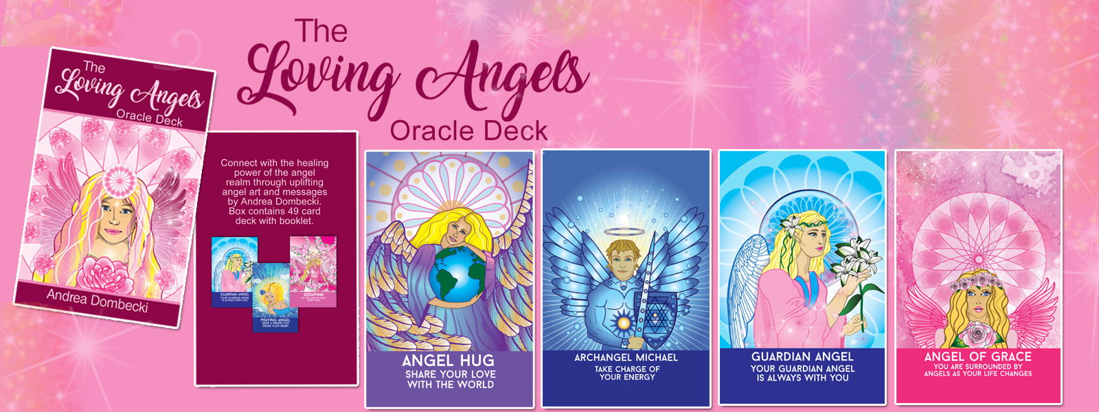 49 card deck with 38 page booklet in fold box. The cards are 3.5 in x 5.5 in Deck includes my original angel art work and channeled angel messages. Created by Andrea Dombecki www.angelfairyhealing.com