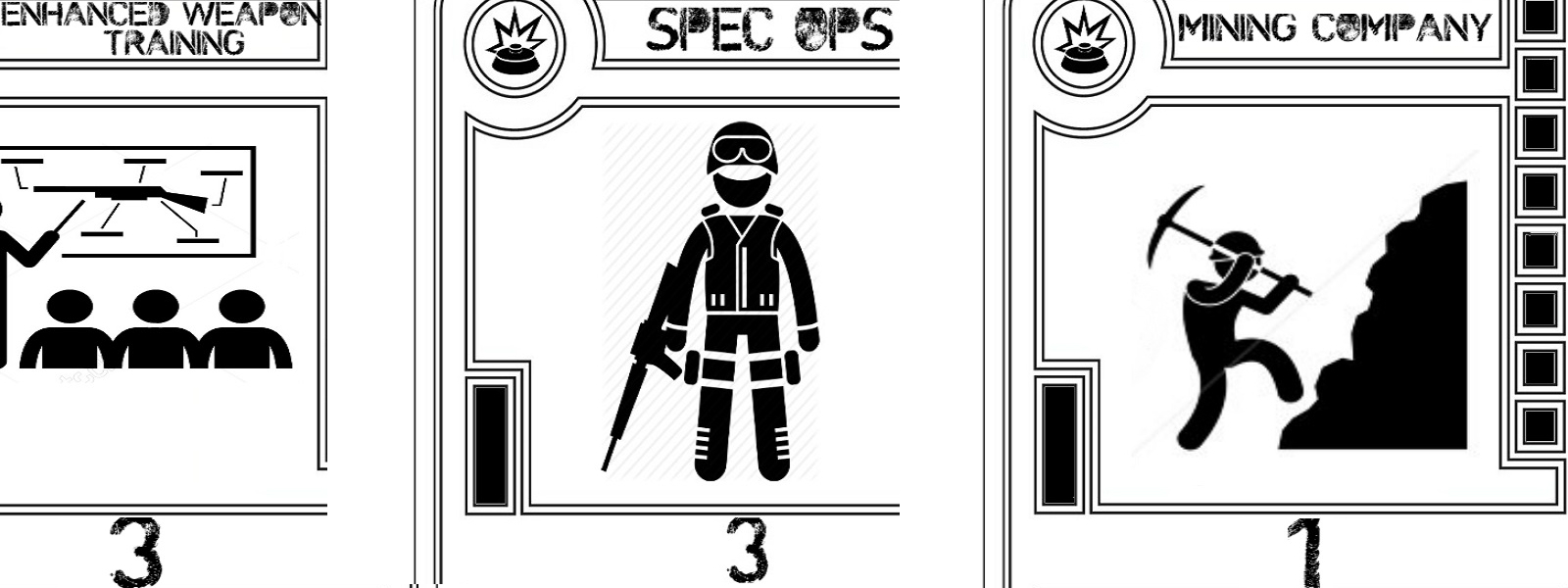 The Minefield is a card game played like many others but it has its own modernized art style combining both war and simplicity. The game is played by no more or less than 2 players. There are four rows of engagement. You place down a Character card in one of these rows to attack your opponent. They can block the attack by placing a Character card in front of the card that you just placed. After placing a card though, you must wait a turn before you can attack with that card. There are also Equipment cards where you can add boosts to a Character card. Each Character card has a limit for Equipment cards, which is displayed as eight square boxes running down the right side of the cards. A white square is an open slot where as a black square is a closed slot. Speaking of slots there is also Enhancement cards which take up the rectangular slot on the left side of the card. Same color rules apply to this as they did to Equipment slots. There are also cards called Resource cards. Resource cards are what generate your resources. Each card costs a specific amount of resources to play. Without any Resource cards down you will only gain one resource per turn, but place down a lot of them and you will be almost untouchable! To win you must bring your opponents health down to zero. We recommend that you use 30 as your health number, but that's up to you and your opponent to decide. Remember, the more health the longer the game will go on. We hope you all enjoy The Minefield without losing a leg in the process!