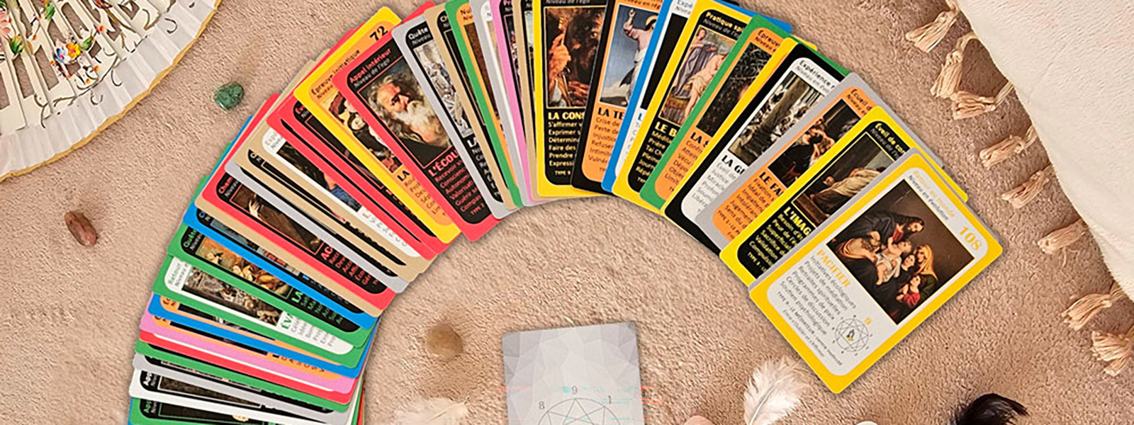 Please visit the store Boutique de l'Oracle de l'ennéagramme for more informations or order the Oracle with booklets and box, or the digital booklet to learn more about the cards.
