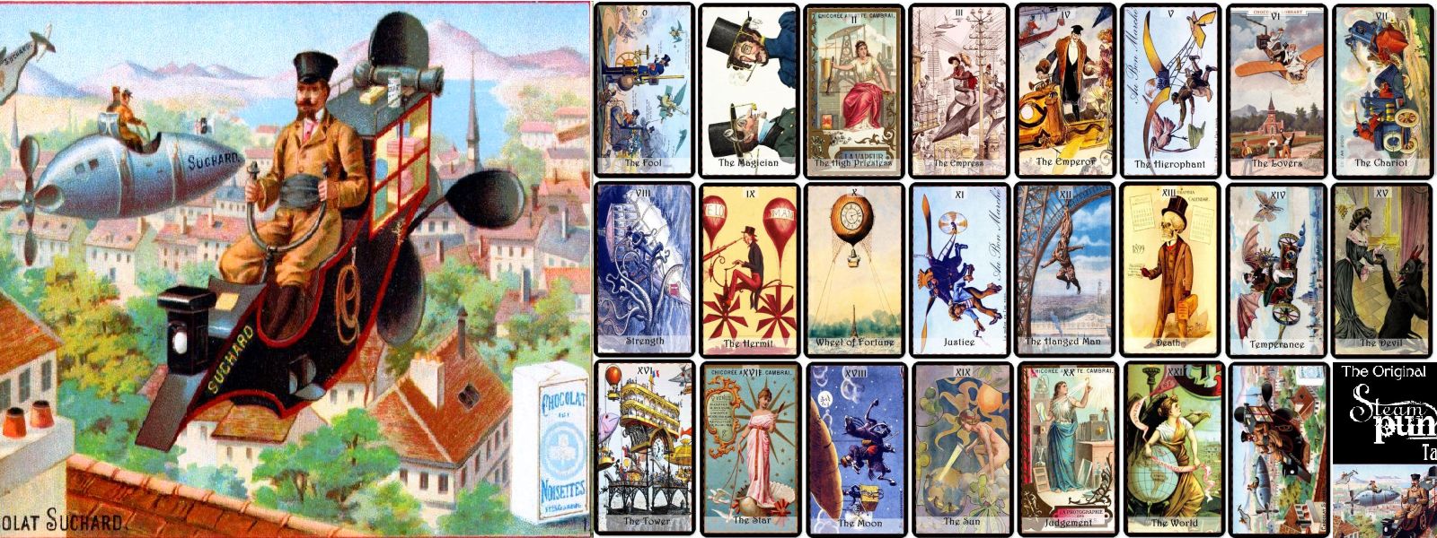 The Original Steampunk Tarot is based on genuine prints from XIX Century Victorian Era to produce our 22-card Major Arcana Tarot Deck. No computer manipulation or photoshop have been used. During this epoch, there was an Age of Steam, and steam power apparatus run throughout the World. The Original Steampunk Tarot will take you on a walk back in time through the epic days of incredible steam machines. This is an elegant journey back to the XIX Century when glamour, invention, and sophistication where found in every aspect of life.