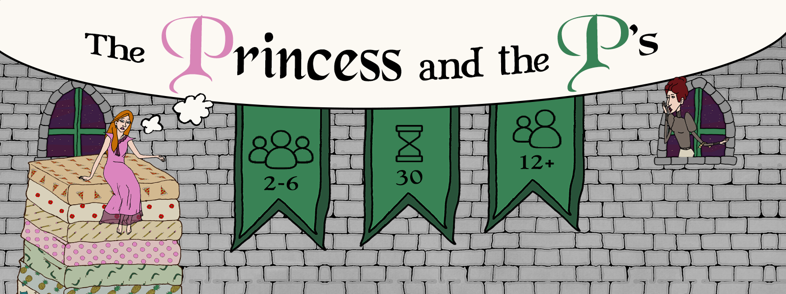 In The Princess and The P's, all but one of the players (the Palace Peons) prompt the remaining player (the Princess) to guess a collection of secret objects whose names contain the letter P. Successful prompts will earn you Pearls. But in the palace, peons are prohibited from using ANY words that contain the letter P. And if you are caught, you'll be piling up Pebbles instead. Cooperate to help the potential princess prevail as you compete against other Peons for the title of MVP (Most Valuable Peon).
