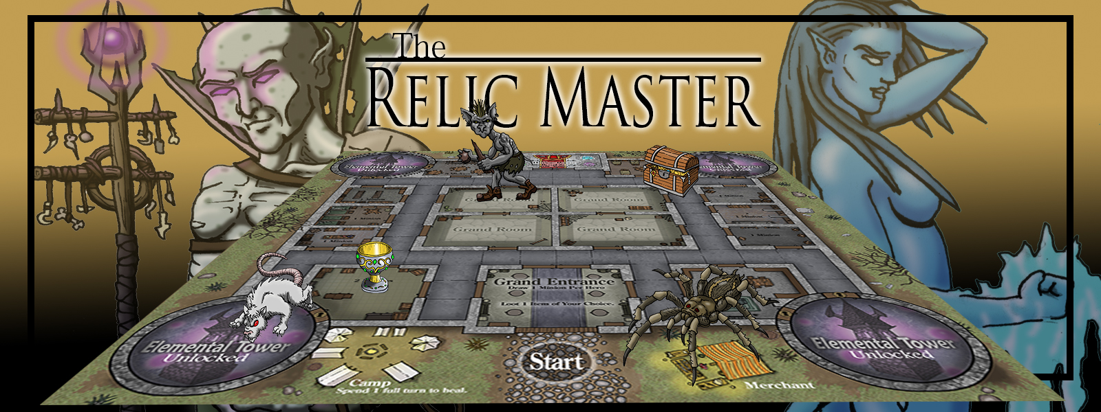 Deep in the crumbling castle of Agrameir lies a centuries old treasure. Gold, gems, armor, weapons and ancient spells from a forgotten time. But the true treasure lies in the last magical relics of the Lords of the Old World. A gathering of relics said to give those who possessed them grand powers. Join your fellow Heroes in recapturing these ruins. Fight monsters and gather gear to make your Hero stronger. For in the end you must face the Relic Master together. This game Incorporates dice rolling with character building for both common and individual goals.