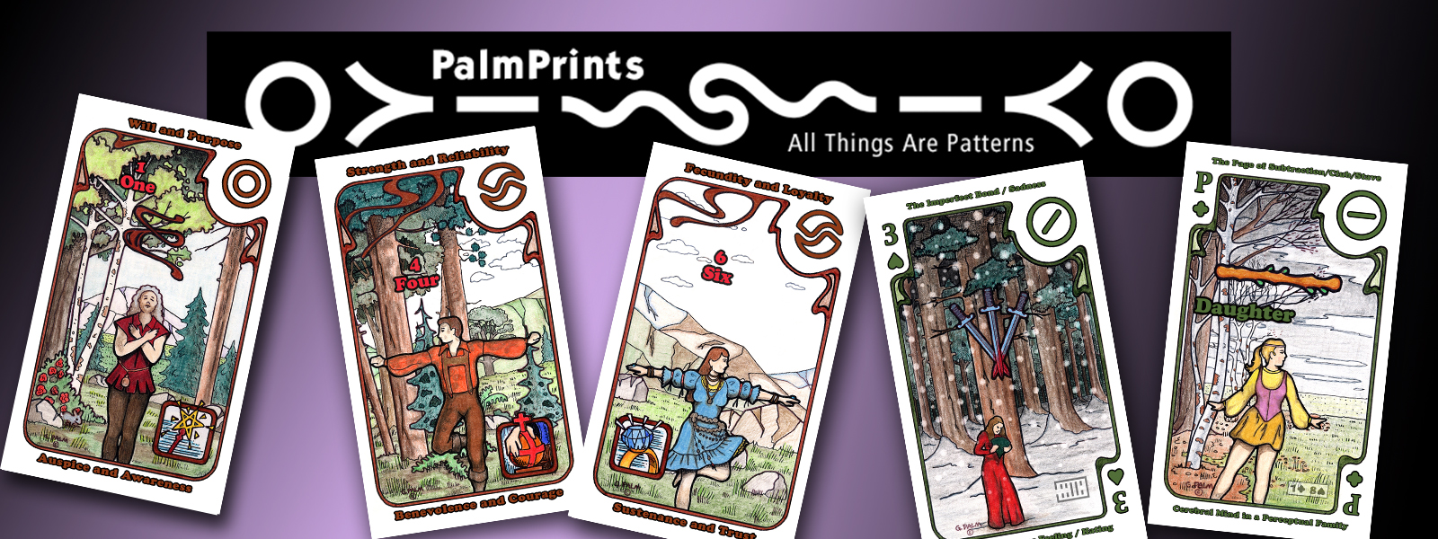 This deck was drawn way back around 1983. It is an early attempt to depart from tradition and illustrate a new tarot paradigm that is not based upon the Rider/Waite/Smith deck, the teachings of any occult society, astrology, alchemy or qabalah. And while somewhat successful, it does still show some signs of traditional influence. However, the underlying structure is definitely unique. To learn more about that underlying structure and what makes it unique, just go to the accompanying web site at www.palmprints.com.