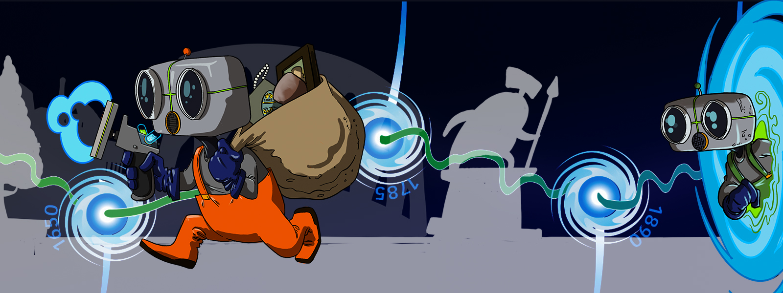 Travel through time, locate valuable artifacts, return to the present without losing them, impress Todd, and get the promotion.