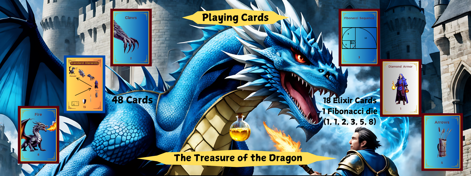 Roll the Fibonacci Die: Luck enters the fray as the Fibonacci die (1, 1, 2, 3, 5, 8) can introduce game-changing Elixir cards. Will you conquer with the Standard Hierarchy, or will the Inverted Hierarchy turn the tables?