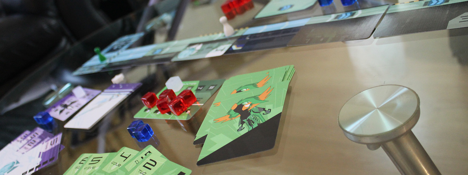 FUTURE SHOCK expands Thunderdrome with two new characters (Atom Smasher and Concorde) and track pieces with Boost Pads - stopping on them gives you free movement, adding a further puzzle to the racing line! The added character decks are bicolour, meaning you can use them with one of two pawn colours for flexibility.