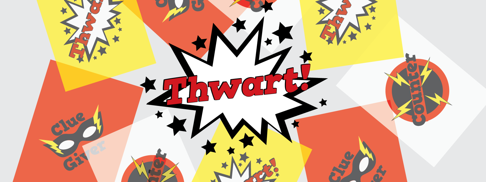 This active party and family word-guessing game pits the wits of two teams against each other. Each team plays Thwart! cards to distract the other team’s Clue Giver who has 30 seconds to get the correct answer from his team. Ranging from silly to challenging, Thwart! cards cause chaos by controlling how the Clue Giver may act, talk or even think while giving clues. So what diabolical demand or corny command will you force upon your foe? Because with Thwart!, you choose it and they do it! First team to earn ten chips wins!