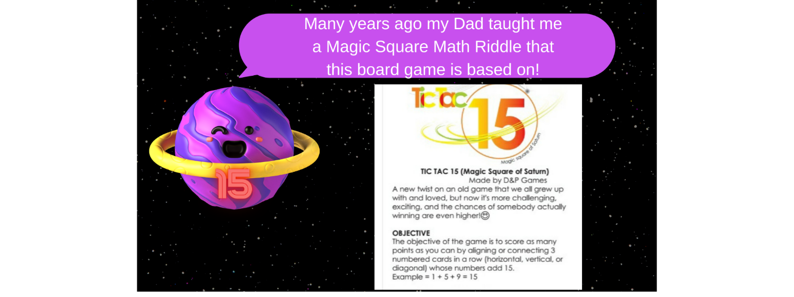 Just when you thought that all the cool , fun games have already been invented ; here comes Tic Tac 15 / Magic Square of Saturn, which is a new twist on an old game that we all grew up with and loved, but now it's more Challenging, Exciting and competitive!