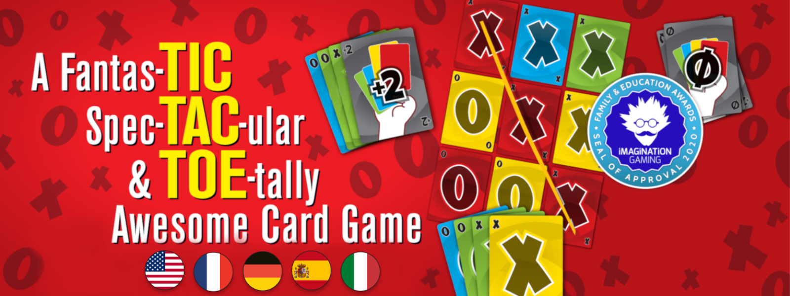 Tic-Tac Match is a wildly unpredictable card game variation of the classic game tic-tac-toe. Just a few minutes to learn provides hours of enjoyment. Challenge your opponent to match three cards in a row of BOTH the same symbol and the same color by stacking on cards already in play. But don’t be fooled by the simple rules. Action Cards interject deep strategies that guarantee a winner every time. Players can flip sides mid-game, wipe out their opponent’s hand or play two cards on a single turn. There is even a team-play version for four players.