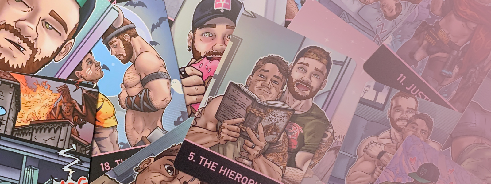 The TIGER AND BEAR TAROT is a modern interpretation of the tarot set in the mundane world, told in everyday moments that occur in the lives shared between two cartoon boyfriends, Tiger and Bear.
