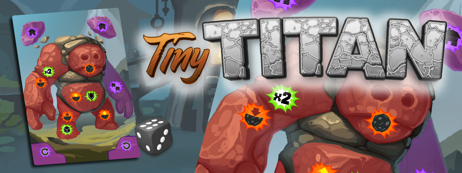 Tiny Titan is a solo dexterity game in which you will try to defeat a giant rock titan before it destroys your village. You must use your dice flicking skills to inflict damage on the titan by landing the die on the titan's damage zones, while avoiding the retaliation zones that cause damage to your village.