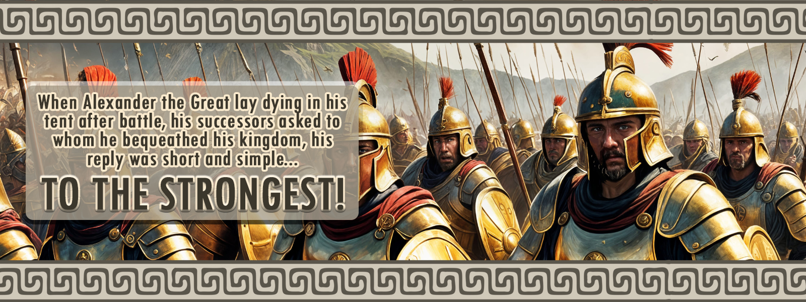 In June of 323 BCE, on his deathbed at the age of 32, when asked to whom he bequeathed his kingdom, Alexander the Great's reply was short and simple: “To the strongest.”