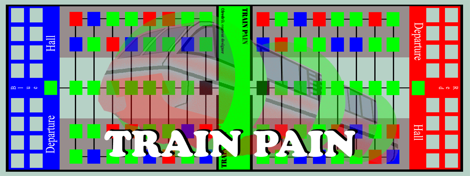 - The playing field consists of two passenger cars with red, blue, black en green squares. The player may use both cars.