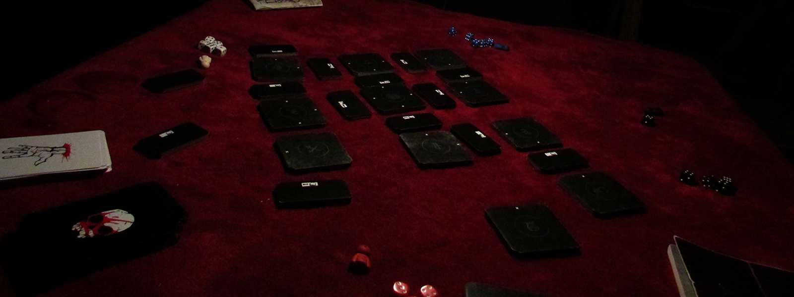 TWELVE DARK ROOMS is a horror game of wits and cards and dice for 2-6 mature players. Create the maze as you explore, search, hide and fight. Once all twelve rooms have been explored, any door that does not lead to another room is a way out. The first player out, wins!