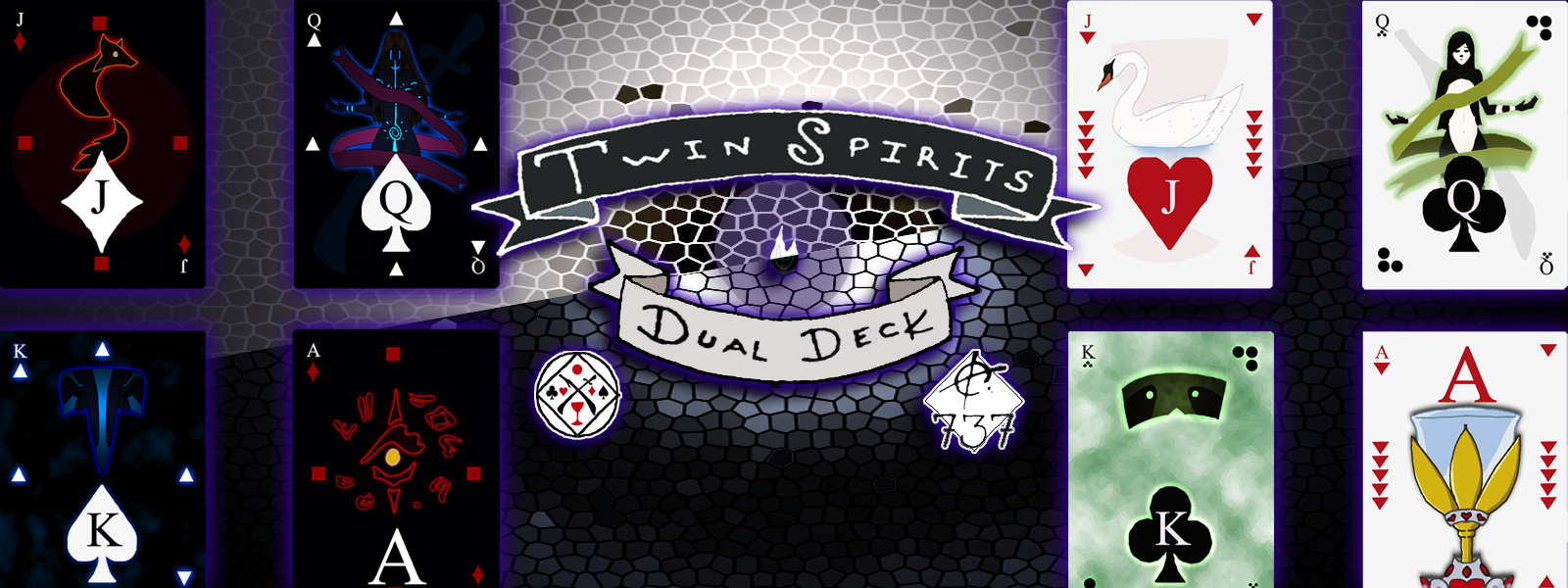 Twin Spirits is a thematic Poker deck. Be part of the fight between light and darkness like the four clans claiming the favor of the Twin Spirits. These illustrations add an epic element to your poker nights.