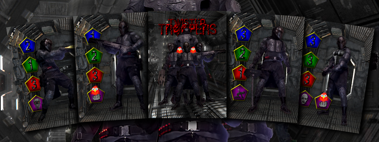 In Twisted Troopers, players collect sets and deploy cards in an attempt to evacuate as many of their OWN troopers as possible before the ship they are on explodes. Some collected sets earn points toward victory, while others mess with competing players' attempts to do the same. In the end, the player that does the best job of saving their own troopers and/or screwing everyone else is F**ckin' Awesome (and the winner).