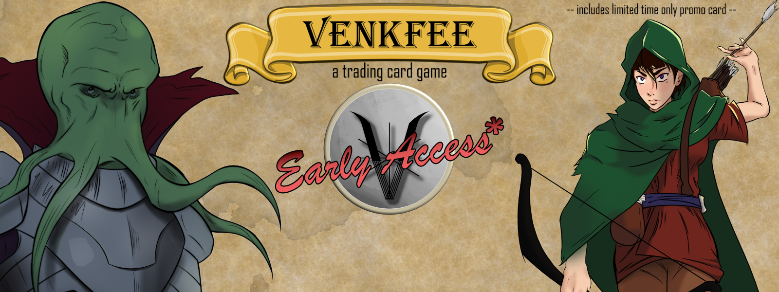 Early Access is a prototype system to where we are launching 24 of our cards into the world in order to help fund the rest of our amazing project. However this Early Access pack will not be around forever and once it is removed from the store the exclusive Early Access promo card will be lost within the void of perpetual darkness never to return again. We would like to thank you in advance for supporting Venkfee TCG and making our dream of creating our game a reality.