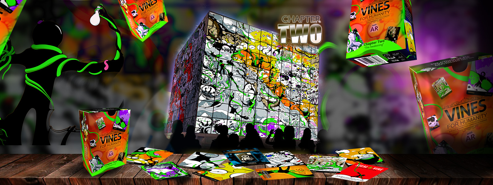 Each card is a VINE. There are 80 VINES per chapter deck. Build the puzzle by piecing the VINE cards together to create the chapter image.