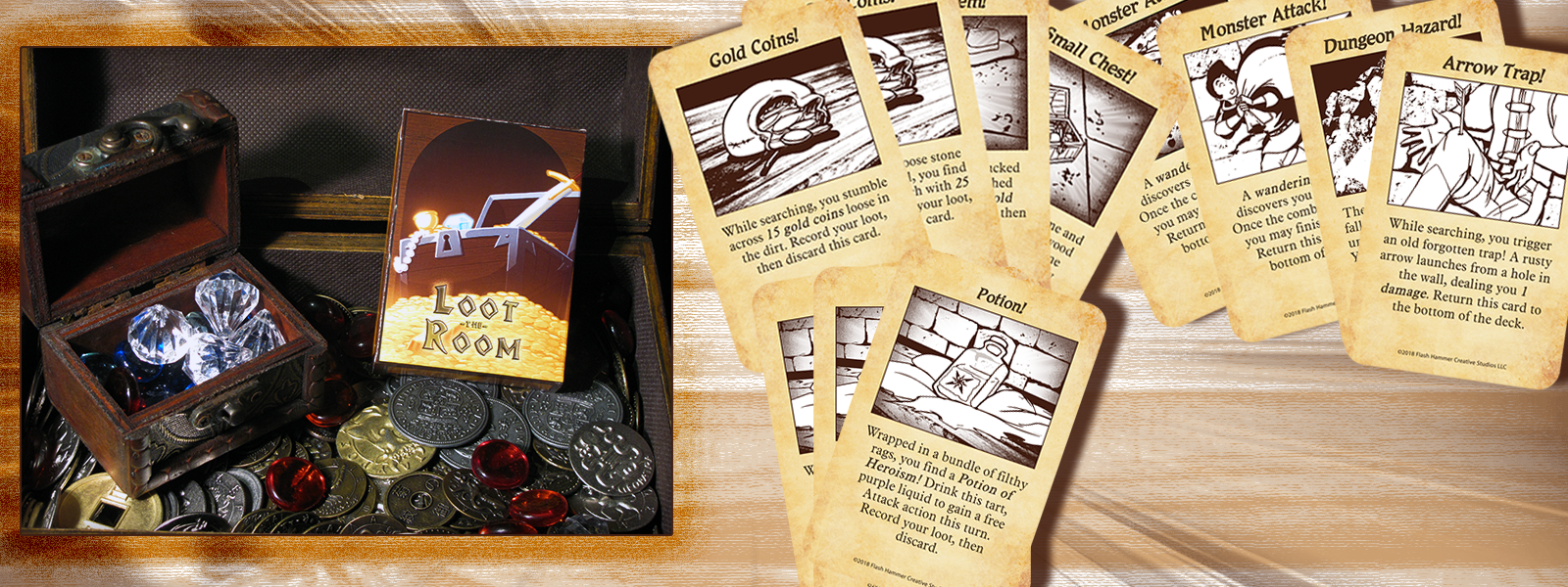 Are you on a heroic quest? Searching for treasure? Search no further! Designed with even the most venerable of tabletop dungeon crawlers in mind, this deck is stacked with treasure, potions, and rare items of magical awesomeness. Beware, however, for mixed in with the good stuff is the bad! Monsters, traps, and deadly hazards protect the loot from you and your party.
