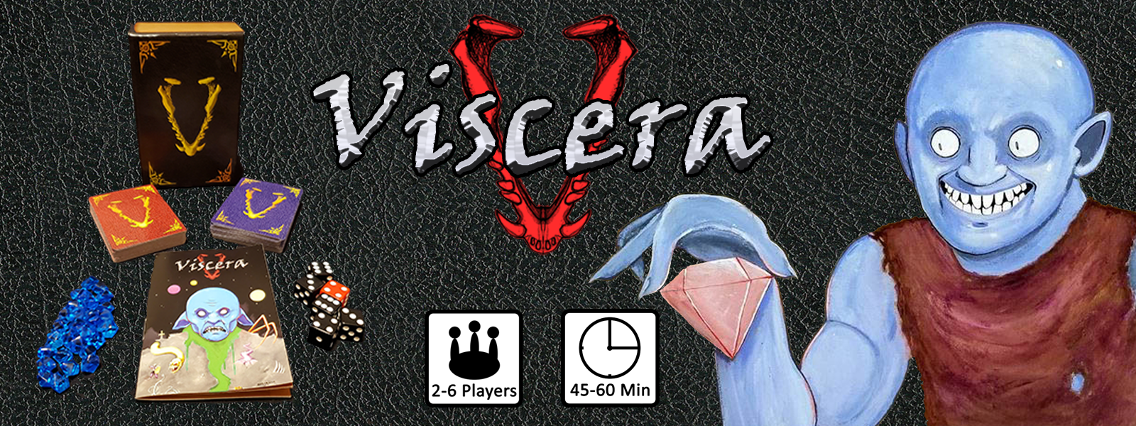 Viscera is a fast-paced tabletop game made by Chris Robert and Cole Basaraba where two to six people buy items, roll dice, and hunt monsters of varying mythologies to become the land's greatest hero.