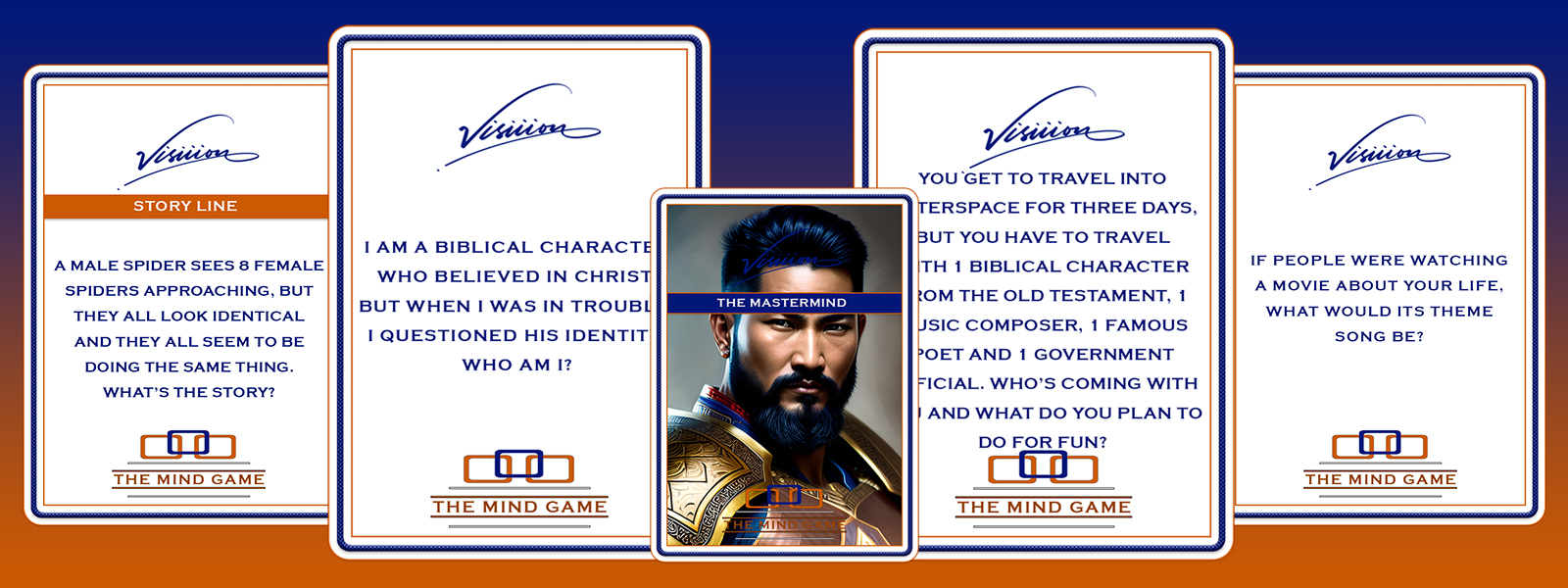 Visiiion: The Mind Game is the perfect card game for visionaries who want to stretch their creative muscles. In this genuinely thought-provoking game, you find both simply questions and questions that challenge your creativity; this includes situational questions. Your job is to weave together a creative tale to make the storyline on the card pop! The player with the most creative tale wins!