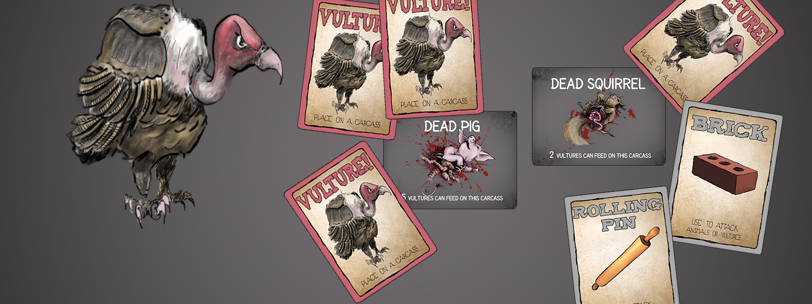 Created by animal lovers (seriously) for people who, well... just want to have some stupid fun - and glorify an often overlooked member of the animal kingdom; the vulture. VULTURES! is a fast paced, yet casual card game that doesn't require a ton of thought... just whip it out and have some good old fashioned fun.