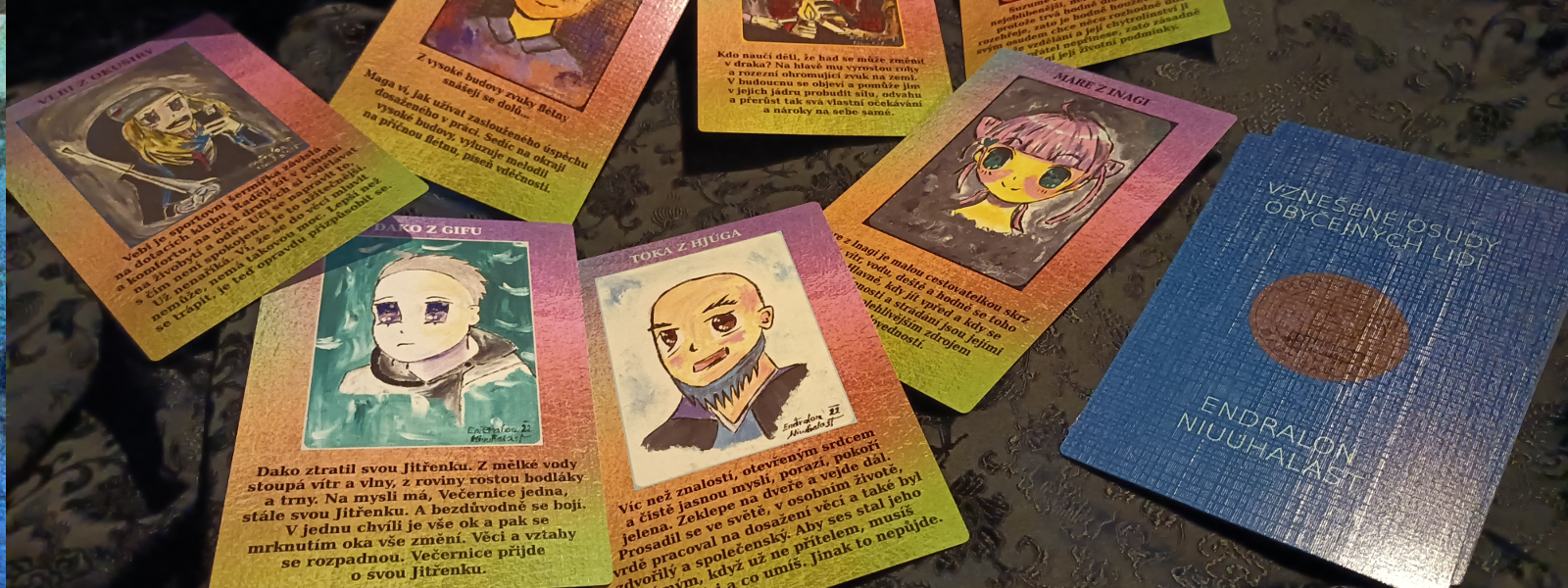 Manga vykládací karty představují rozličné manga charaktery od dětí, studentů po dospělé a staré osoby různých charakterových vlastností.