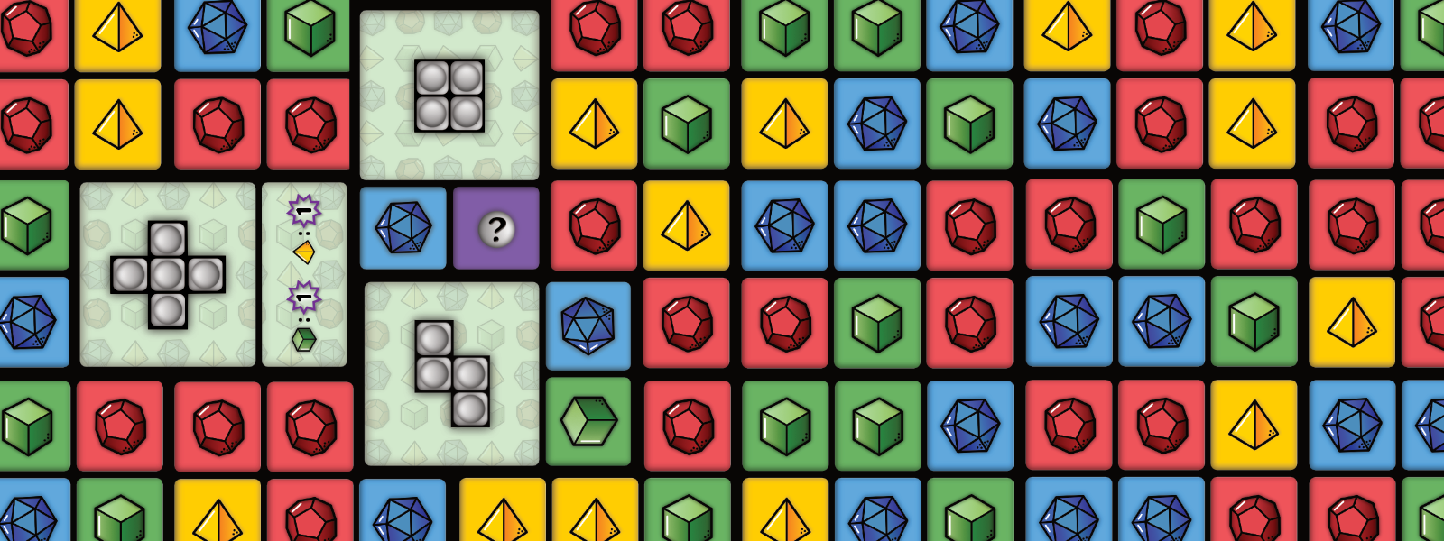 Once each player has played all 5 cards into their tableau, then each player will clean up their tableau by setting all score conditions acquired for the round aside into stacks of tetrominos and pentominos, splayed out so that the score conditions are visible. Players receive victory points at the end of the game by multiplying the sum of matching symbols on tetromino score conditions by the sum of points earned for the same symbol on pentomino score conditions.