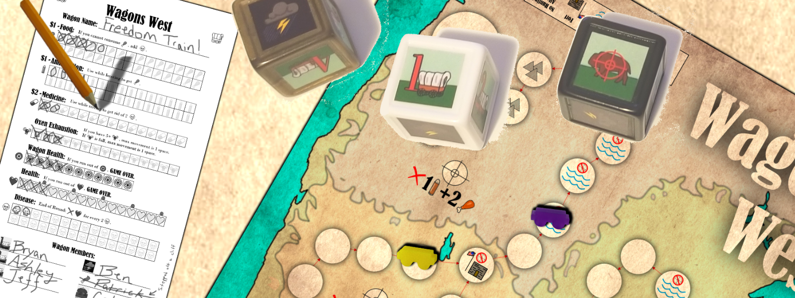 In Wagons West, each player will decide from the same dice rolls which actions (and how big of risks) to take. If you don't take risks, you'll likely survive, but you won't get to Oregon first! Managing all of your resources will be important if you hope to be successful.