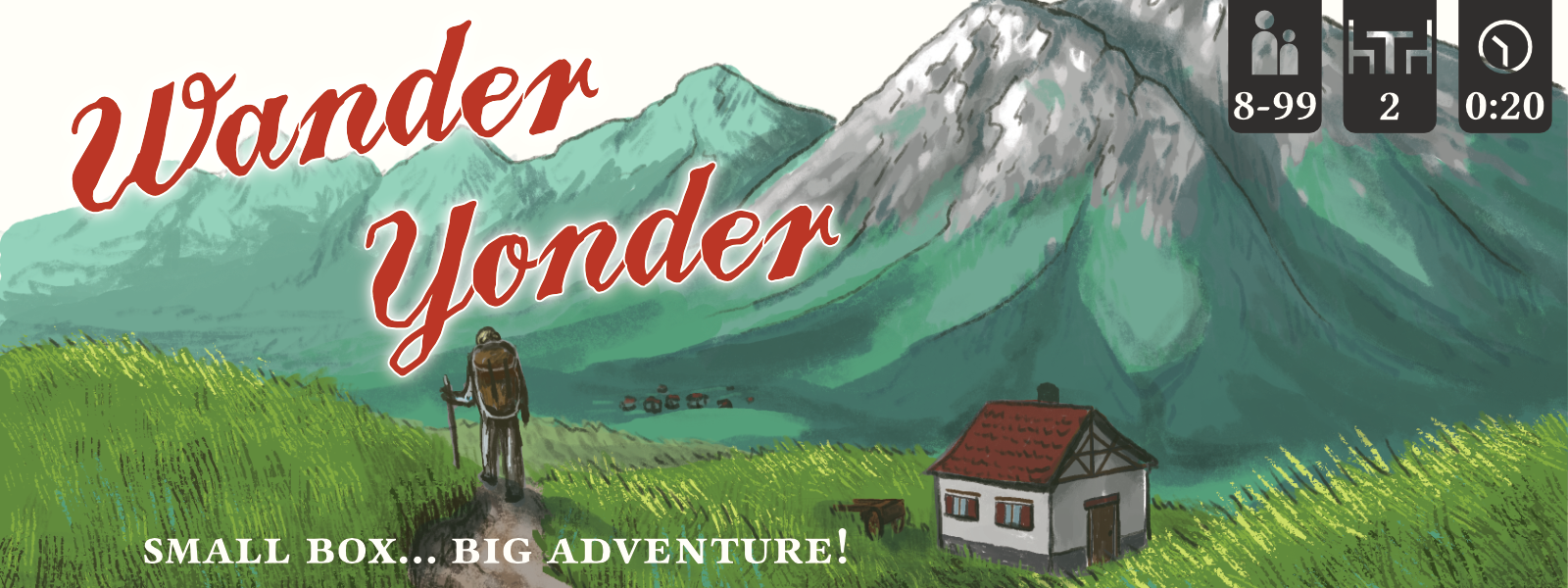Wander Yonder is a 2 player head-to-head competition for the title of the Greatest Wanderer. Prudently stake your claim on promising lands, then build up your Estate to score big points.