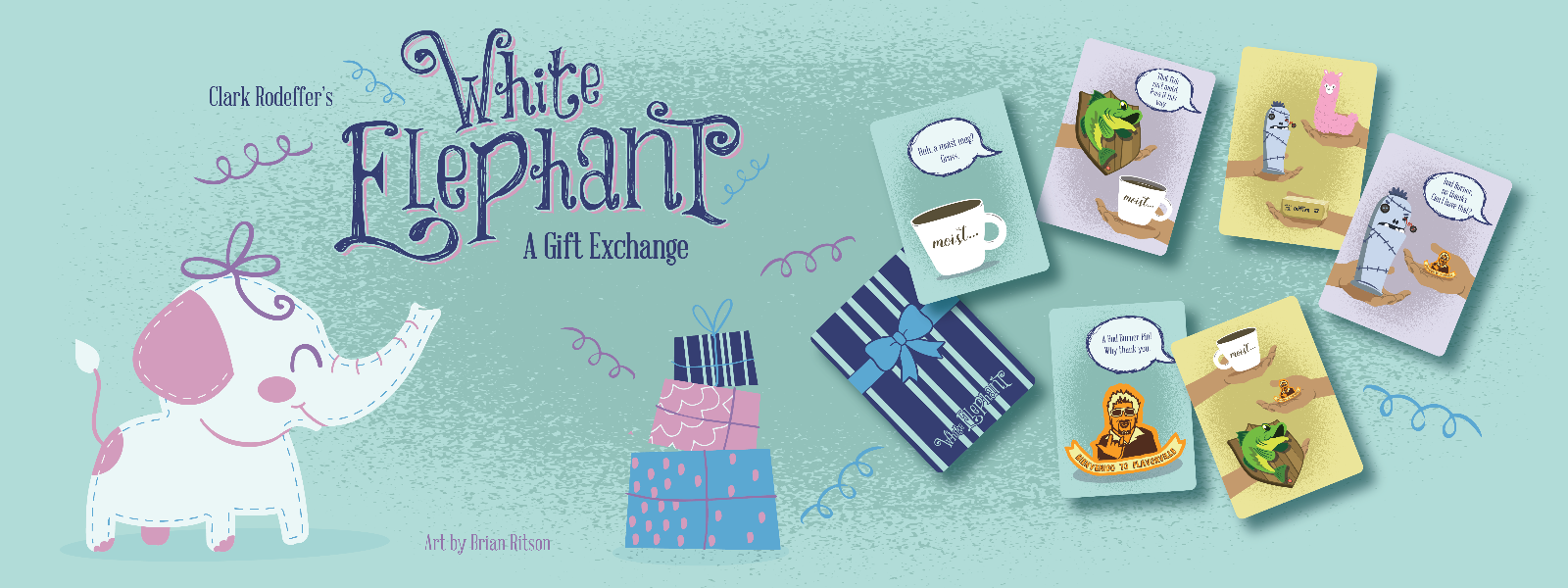 White Elephant is a negotiation game featuring a gift economy system. In White Elephant you pass gifts around and collect the most items you can. Be the one who scores the most items in your group of friends or family.