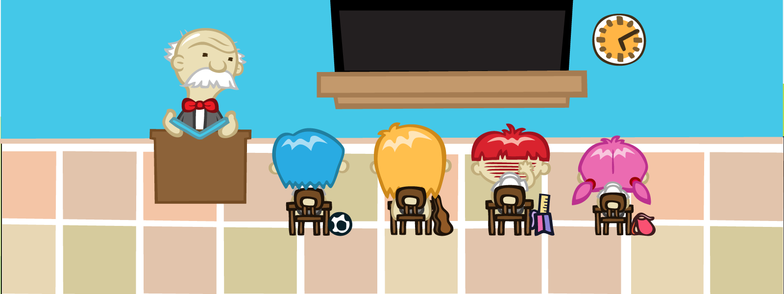 Become a teacher and try to find the missing student in class while the delinquent try to foil the teacher's plan.