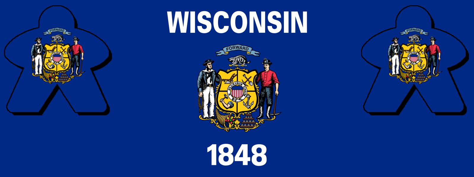 These meeples are designed to mimic Wisconsin's state flag, consisting of a blue field with the state coat of arms at the center. While the color blue represents traits such as wisdom, trust and truth, it also represents loyalty--blue is a common color on flags of states that aligned with the Union during the Civil War. The state seal, meanwhile, incorporates a number of symbols associated with the state including a badger, a miner, a sailor, and a plow.