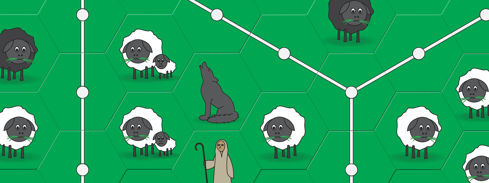 A game of tile placement and cooperation. The wolf pack is on the hunt, and they want your herd. Build fences and hire shepherds to protect your flock. If the wolves eat more sheep than you can round up, you lose the game!