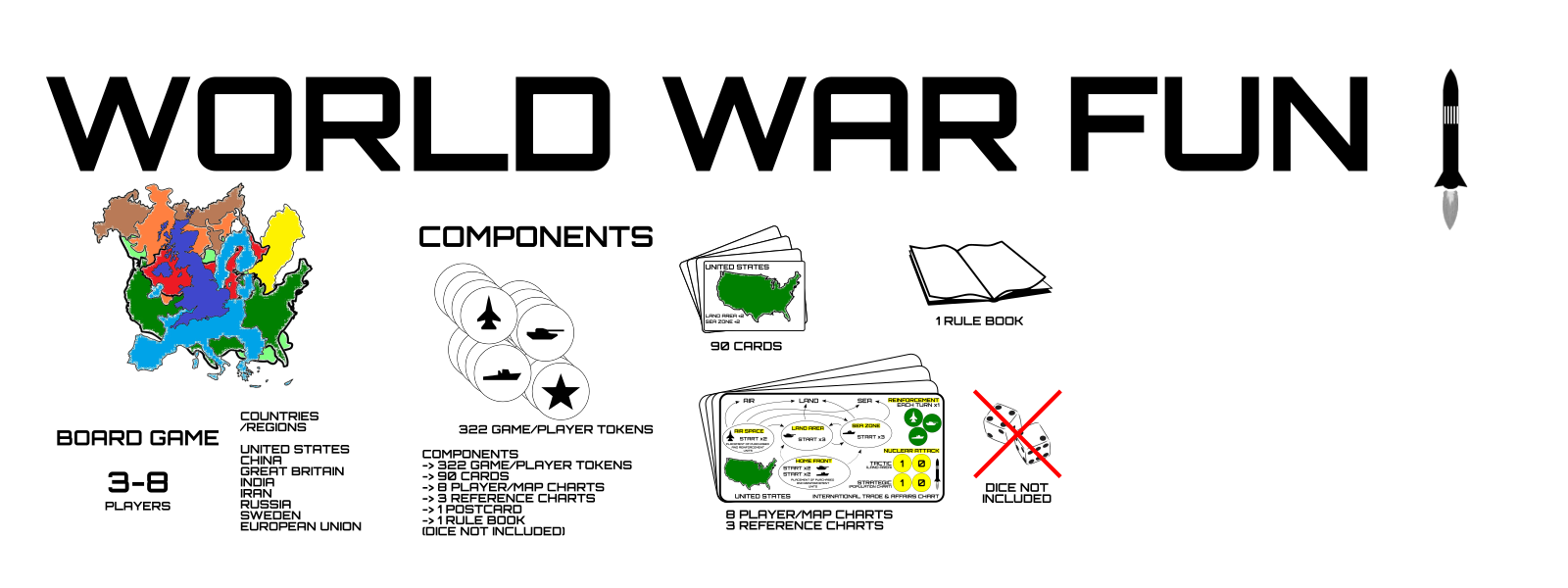 WORLD WAR FUN board game involve tactic use of tanks, ships, planes and strategic nuclear attacks!