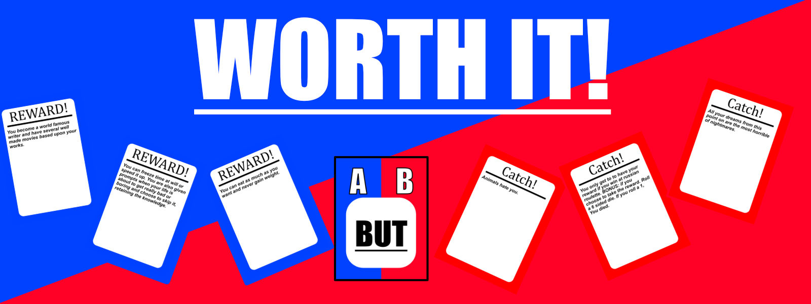 Worth It! Is a game made to get to know your friends and to ask some silly, or deep questions. Not every question will make sense, but that’s part of what makes Worth It! Fun! It’s an easy game to pick up and play with friends, or to use as an icebreaker at a new job, first day of school, or other event. Games go by quickly, and it allows for a large number of players to join the fun! Although the game is only made for 10 players, it’s possible to play with more as long as you find an alternative way to place your answers. And the Liar Liar! Rules are playable with up to 12 players right out the box! Take Worth It! To your next outing and get to know people better.