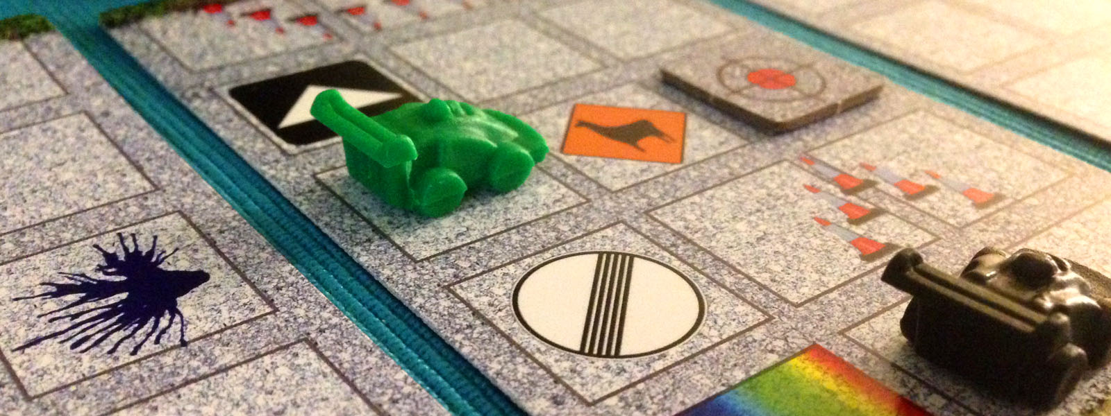 The rules are simple. You decide whether the race course is hidden, randomized, or built by design. Then you're off - each person moving ahead through dice rolls, dealing with obstacles as they encounter them, and using their own personal stash of obstacles to alter the upcoming road in any way that they like.