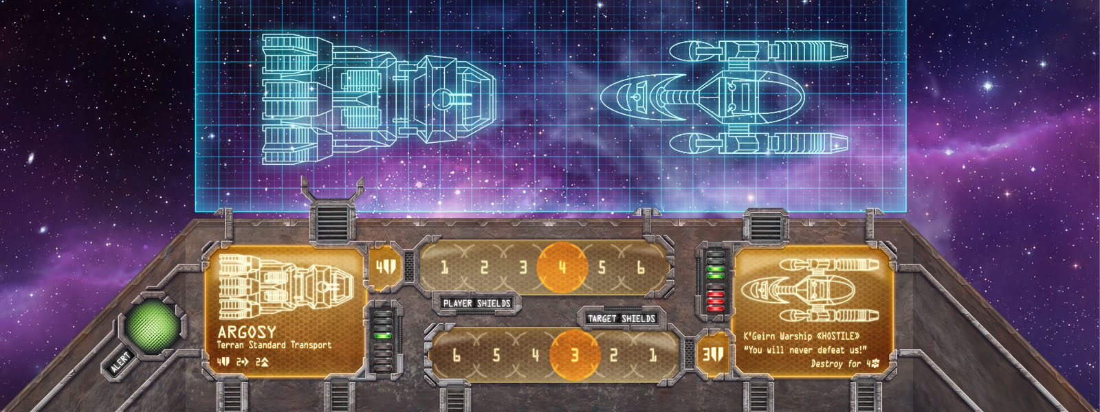 You are a spaceship captain looking to make a living in the galaxy by exploring undiscovered locations, recovering salvage, trading with other adventurers, and encountering friendly and hostile alien races.
