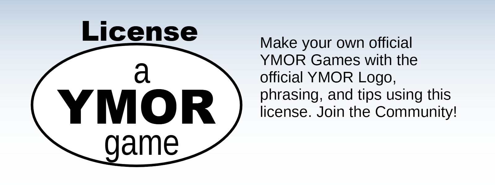Now, you can make your own official YMOR branded games by using this license. Just purchase the license and you get: - Permission to use the YMOR logo, branding, and terminology in your own game. - A copy of the YMOR logo (PNG) for you to use in your games. - Tips on making a game in the spirit of YMOR.