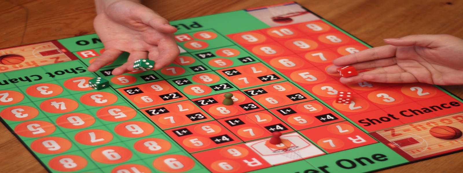 Z-hoop! It's a slam dunk! Easy to learn and fun to play. An exciting combo of luck and strategy that the whole family will enjoy. Roll the dice and move your player as you try to make a basket. But beware, your opponent will be trying to block your every move and steal possession of the ball! Who will win in this exciting basketball duel?