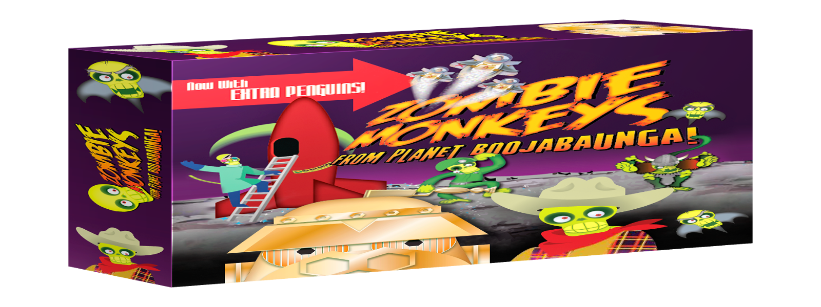 The year is 3010. The infamous Zombie Monkey/Penguin Wars have come to a close, and the zombie monkeys are scrambling to get back to their home planet of Boojabaunga!